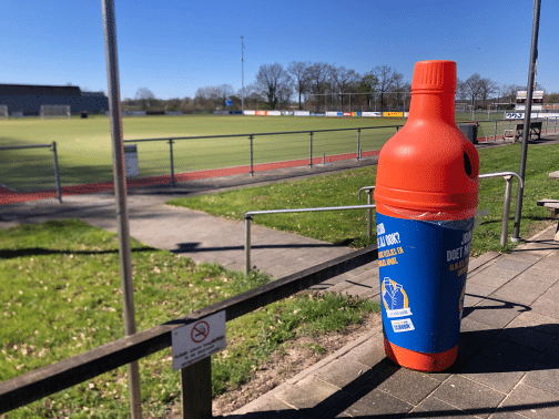 Plastic bak naast sportveld